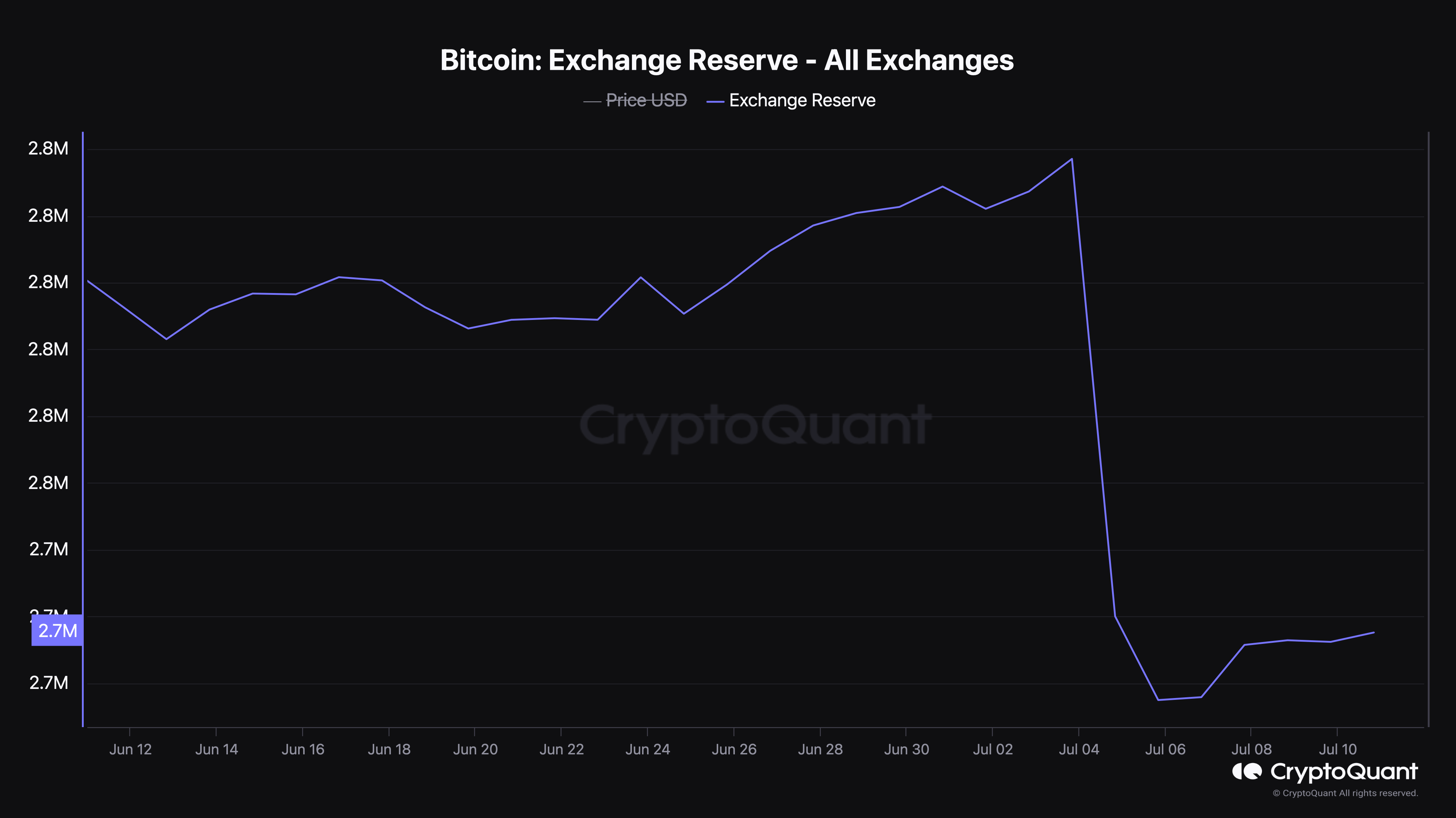 تشير المقاييس إلى تدفق كبير للبيتكوين ( BTC ) من البورصات عشية عطلة 4 يوليو. تكشف البيانات من cryptoquant.com أن الاحتياطيات في البورصات المركزية انخفضت من 2،848،539 BTC إلى 2،777،573 BTC . يمثل هذا أدنى مستوى لاحتياطيات BTC منذ نوفمبر 2018. بين 3 يوليو واليوم، خرج 70،966 BTC ، بقيمة 4 مليارات دولار، من البورصات.
